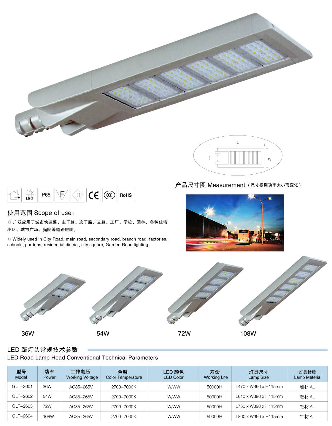 led路燈燈頭技術(shù)參數(shù):